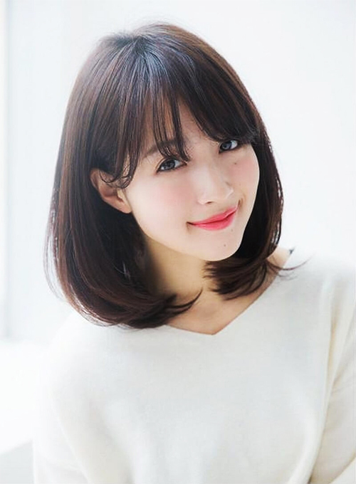 Kiểu tóc ngắn được cắt bằng (đầu vuông) này khi kết hợp với mái mưa sẽ đem đến hiệu quả tuyệt vời trong việc giúp bạn trẻ ra, đồng thời sẽ khiến khuôn mặt nhỏ nhắn và thon gọn hơn. Nguyên do là bởi phần tóc hai bên lẫn phần mái đã giúp bạn che hết các khuyết điểm như trán cao hay xương hàm thô. Còn nếu bạn sinh ra đã may mắn sở hữu khuôn mặt trái xoan gọn gàng thì kiểu này lại càng hợp.
