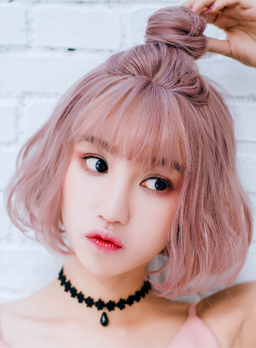 Mái tóc ngắn mà buộc nửa đầu, ấn tượng đầu tiên bao giờ cũng là nét xinh xắn, trẻ trung mà không kém phần nhí nhảnh nghịch ngợm của các nàng. Cũng giống như tóc dài, tóc buộc nửa đầu với lọn tóc ngắn một mẩu khá là thú vị chính là kiểu tóc đơn giản nhất.